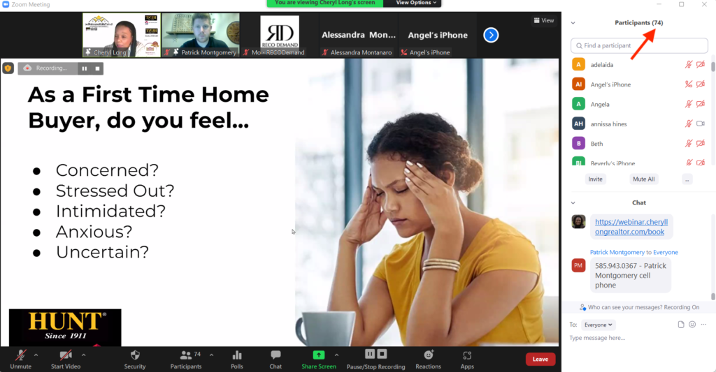 "We had 134 registrations...it was about $1.46 per registrant, over 50 people actually attended live on the webinar, and it resulted in 14 follow-up appointments...so far I've actually gotten 2 face-to-face appointments...I love the CRM; how it'll go back and try to get [those who didn't attend] on another webinar, or just follow-up with them. And it's also a great tool for us to give to our buyer agents to add to their database of potential buyers, especially if they're looking down the road."